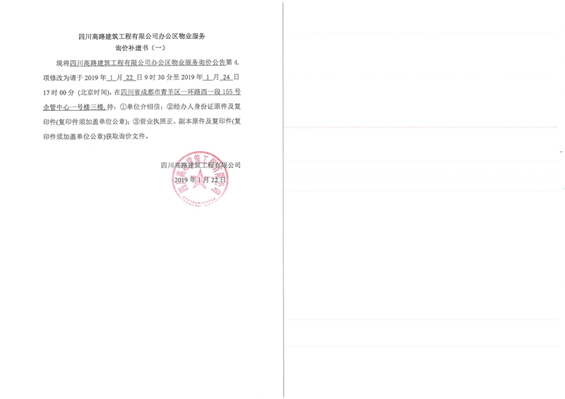 补遗书(一)--四川高路建筑工程有限公司办公区物业服务